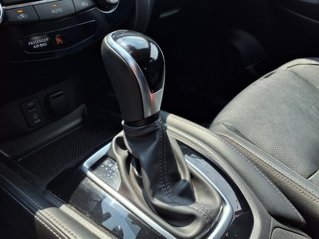 nditioning, Alloy wheels, AM/FM radio: SiriusXM, Automatic temperature control, Black Splash Guards (Set of 4), Brake assist, Bumpers: body-color, Carpeted Floor Mats, CD player, Chrome Rear Bumper Protector, Delay-off headlights, Driver door bin, Driver vanity mirror, Dual front impact airbags, Dual front side impact airbags, Electronic Stability Control, Emergency communication system: NissanConnect Services, Four wheel independent suspension, Front anti-roll bar, Front Bucket Seats, Front Center Armrest, Front dual zone A/C, Front fog lights, Front reading lights, Fully automatic headlights, Heated door mirrors, Heated front seats, Heated steering wheel, Illuminated entry, Leather Appointed Seat Trim, Low tire pressure warning, Navigation System, Occupant sensing airbag, Outside temperature display, Overhead airbag, Overhead console, Panic alarm, Passenger door bin, Passenger vanity mirror, Power door mirrors, Power driver seat, Power steering, Power windows, Quick Comfort Heated Front Bucket Seats, Radio data system, Radio: AM/FM/CD/RDS/AUX NissanConnect w/Navigation, Rear anti-roll bar, Rear Cargo Protector (2-Pc Carpet), Rear seat center armrest, Rear window defroster, Rear window wiper, Remote keyless entry, Roof rack: rails only, Security system, Speed control, Speed-Sensitive Wipers, Split folding rear seat, Spoiler, Steering wheel mounted audio controls, Tachometer, TBD Axle Ratio, Telescoping steering wheel, Tilt steering wheel, Traction control, Trip computer, Turn signal indicator mirrors, Variably intermittent wipers, and Wheels: 19" x 7.0" Aluminum Alloy. Odometer is 46105 miles below market average! 24/30 City/Highway MPG
