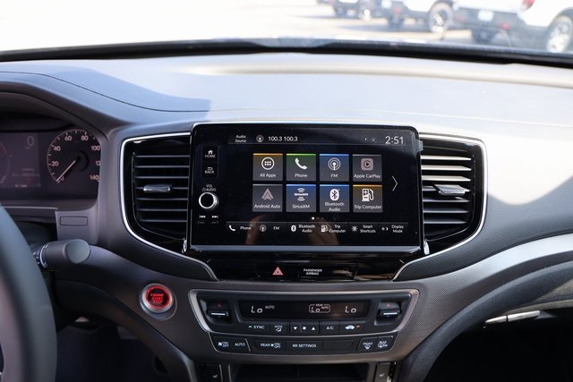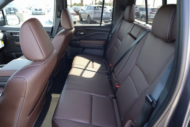 ondaLink Assist, Exterior Parking Camera Rear, Four wheel independent suspension, Front anti-roll bar, Front Bucket Seats, Front dual zone A/C, Front fog lights, Fully automatic headlights, Garage door transmitter: HomeLink, Heated door mirrors, Heated Front Bucket Seats, Heated front seats, HondaLink, Illuminated entry, Leather Seat Trim, Leather steering wheel, Low tire pressure warning, Memory seat, Outside temperature display, Panic alarm, Power door mirrors, Power driver seat, Power moonroof, Power passenger seat, Power steering, Power windows, Radio data system, Radio: 215-Watt Audio System w/7 Speakers, Rear air conditioning, Rear anti-roll bar, Rear window defroster, Remote keyless entry, Security system, SiriusXM, Speed control, Speed-sensing steering, Split folding rear seat, Steering wheel mounted audio controls, Tachometer, Telescoping steering wheel, Tilt steering wheel, Traction control, Trip computer, Turn signal indicator mirrors, Variably intermittent wipers, Wheels: 18" Pewter Gray Machine-Finished Alloy. Price includes: $1500 - 2026 Ridgeline Sales Credit. Exp. 11/03/2025